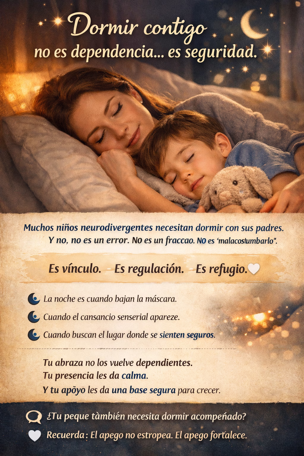 ¿Tu peque también necesita dormir acompañado? Cuéntame tu experiencia o consejos. Recuerda: tu amor no lo está haciendo dependiente. Tu amor le está dando un lugar seguro para crecer.